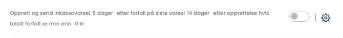 - For innstillingen "Opprett og send varsel om fravikelse hvis totalt forfall er mer en x kr", så baseres denne summen kun på fakturaen. Vi har per idag ingen måte å ta høyde for kundereskontro.