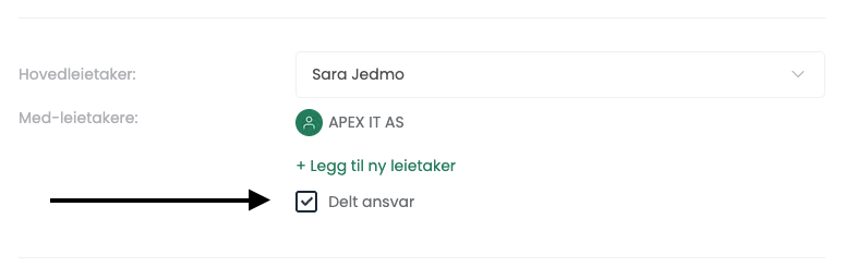 Hvis det ikke er huket av "delt ansvar" inne på leiekontrakten så blir alt av varsel kun sendt til hovedleietakeren. Det er derfor viktig at huke av delt ansvar når dere oppretter kontrakten, og senest før utkastelsesprosessen begynner, for å sikre seg om at alle leietakere får nødvendig informasjon.