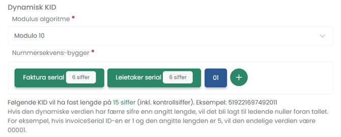 Dynamisk KID er en funksjon i systemet som lar deg lage et egendefinert format på KID-nummer, som automatisk genereres for hver faktura.