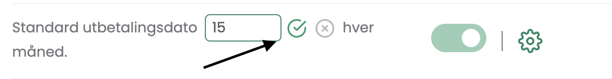 - Fyll i ønsket utbetalingsdato, og trykk «Enter», eller klikk på det grønne merket: