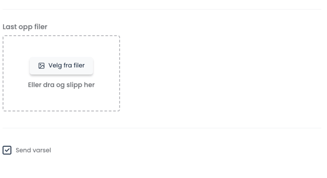 - Du kan velge om du ønsker å sende ut epost til leietaker eller ikke. Ønsker du å ikke sende ut mail til leietaker, ta bort avhukingen ved siden av “Send varsel”. Trykk så på “Opprett”.