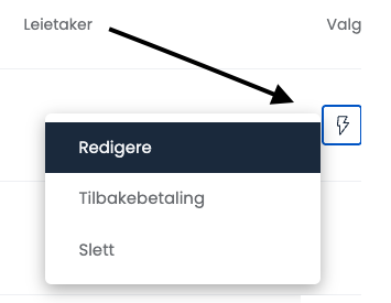 - Klikk på lynet til høyre om innbetalingen du skal redigere, og velg «Rediger».