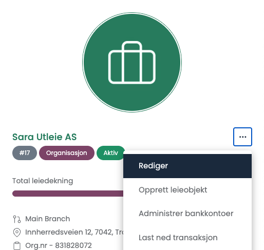 - Klikk på de tre prikkene under utleieren, og velg «Rediger»:
