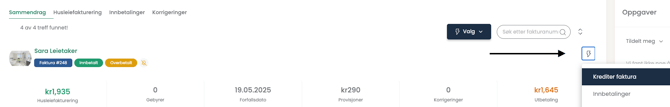 Hvis du gjør en noe av det, la det gå noen minutter så systemet får jobbet seg ferdig før du eventuelt krediterer, korrigerer eller oppretter en faktura på leieforholdet på nytt.
