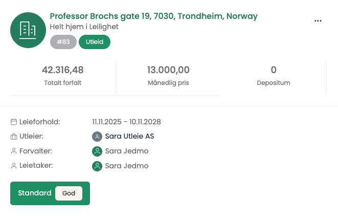 - Navigere deg inn på objektet gjennom å søke under «Leieobjekter» i menyen til venstre.