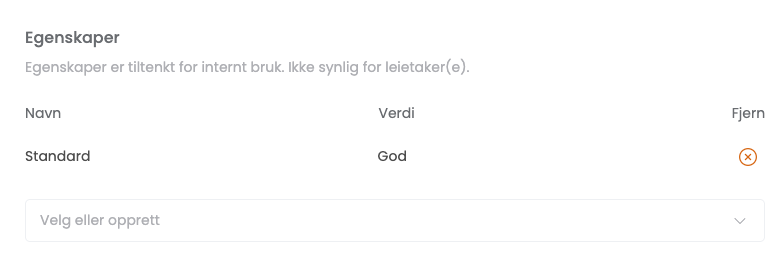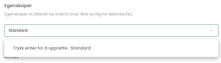 - Bla nedover til du finner "Egenskaper". Dersom dere ikke har lagt til en egenskap tidligere, så må man først opprette en egenskap. Det gjør du gjennom å fylle i navnet på egenskapen du ønsker å opprette i boksen, og trykke på ENTER: