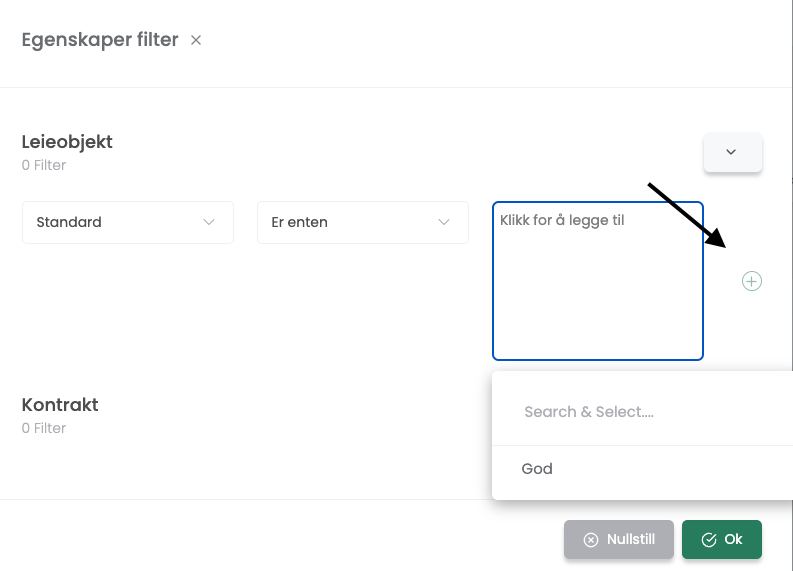 - "klikk for å legge til" for å velge verdien etter at du valgt egenskap.