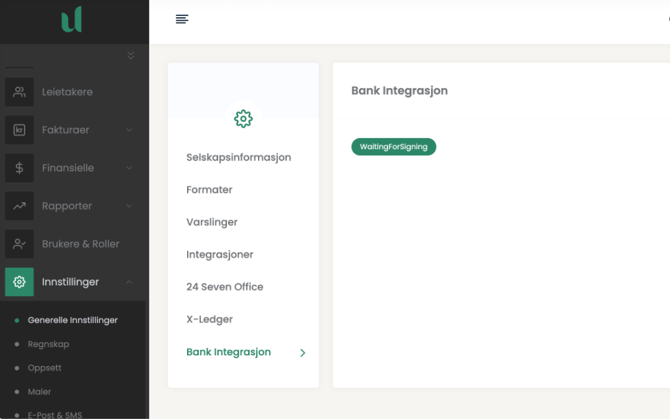 I Unite Living kan du se på innstillingene at man har startet på onboardingen ved at status har byttet til “Waiting for signing”, mens man venter på at avtalen er signert.
