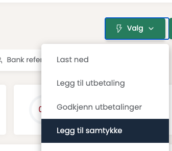 Trykk på «Valg» knappen som ligger øverst til høyre → Velg legg til samtykke.