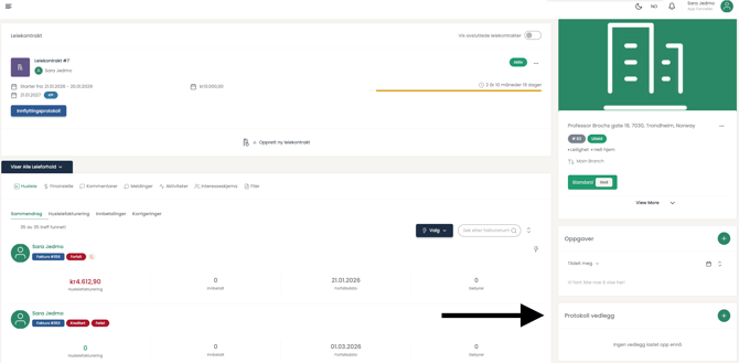 - Merk at vedlegget ikke vises under opprettelse av inn/utflyttingsprotokollen, uten vises først når protokollen har blir sendt ut for signering. Den blir da med på både utleier og leietaker sin signering.