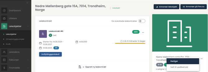 - Gå til leieobjekt → trykk på de tre prikkene og rediger.